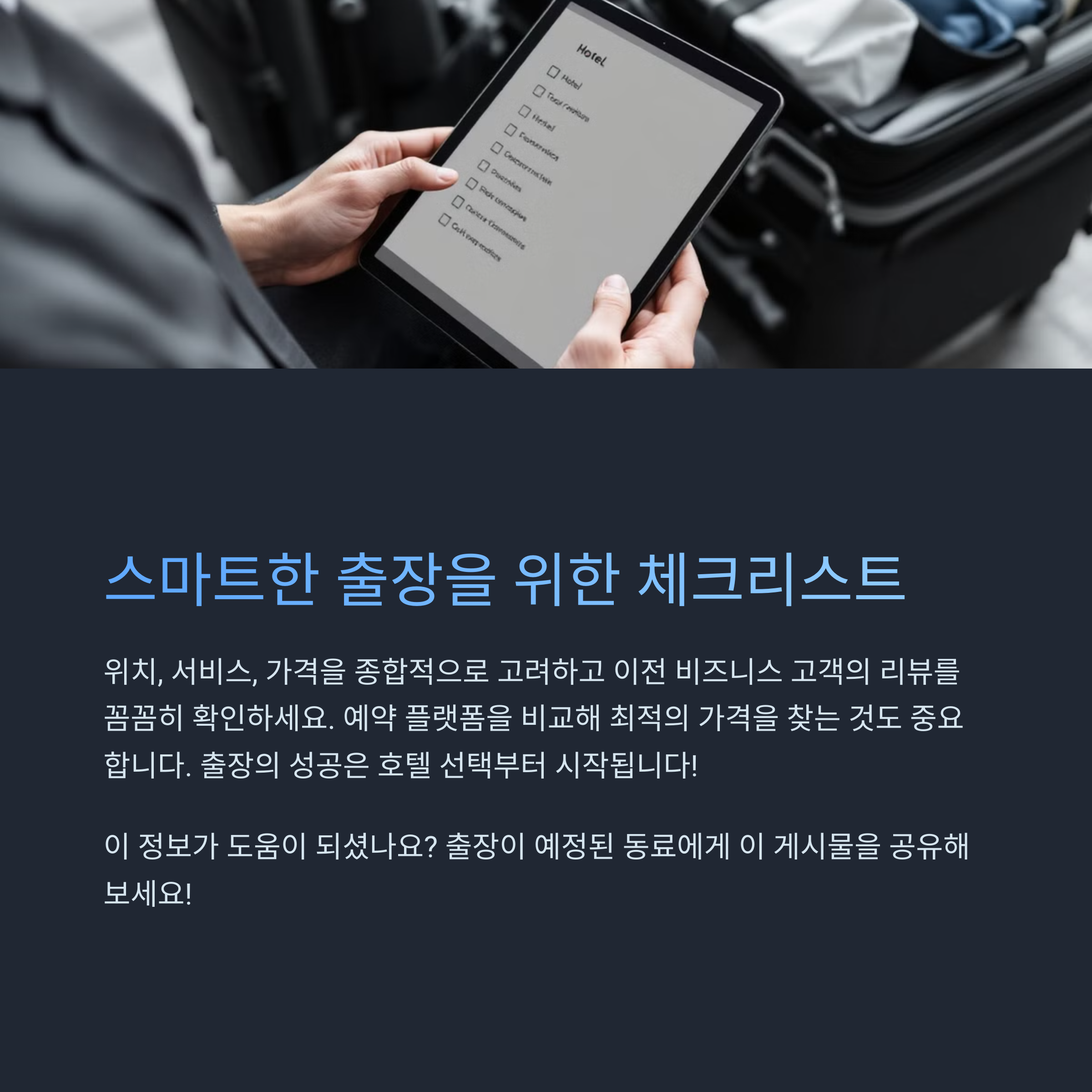 출장 중 자주 찾는 호텔이나 추천 서비스가 있으신가요? 댓글로 자유롭게 공유해주시면 많은 분들께 큰 도움이 될 거예요!