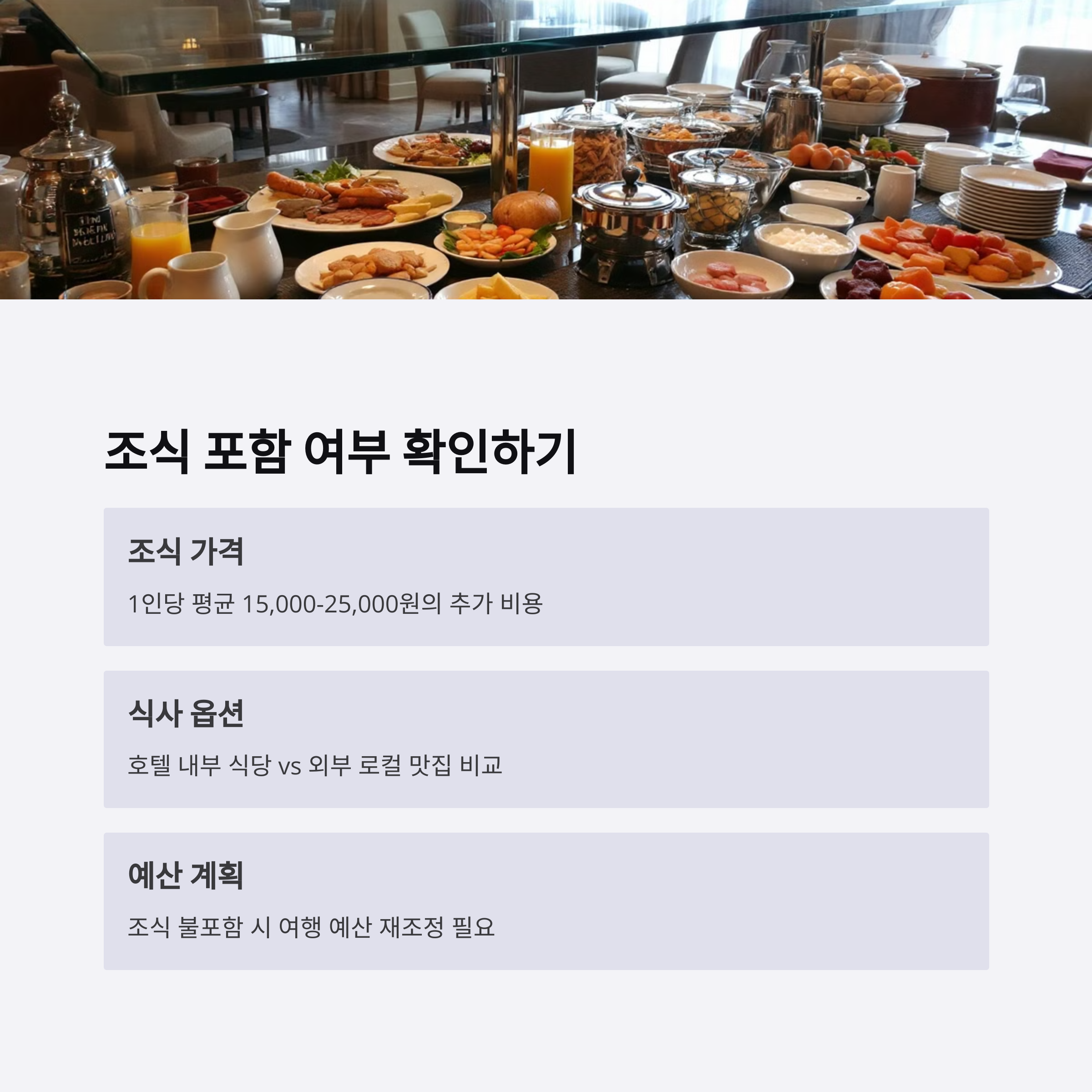 | 조식 포함 여부 | 포함인지 확인 안 하면 현장에서 추가 비용 발생 |
