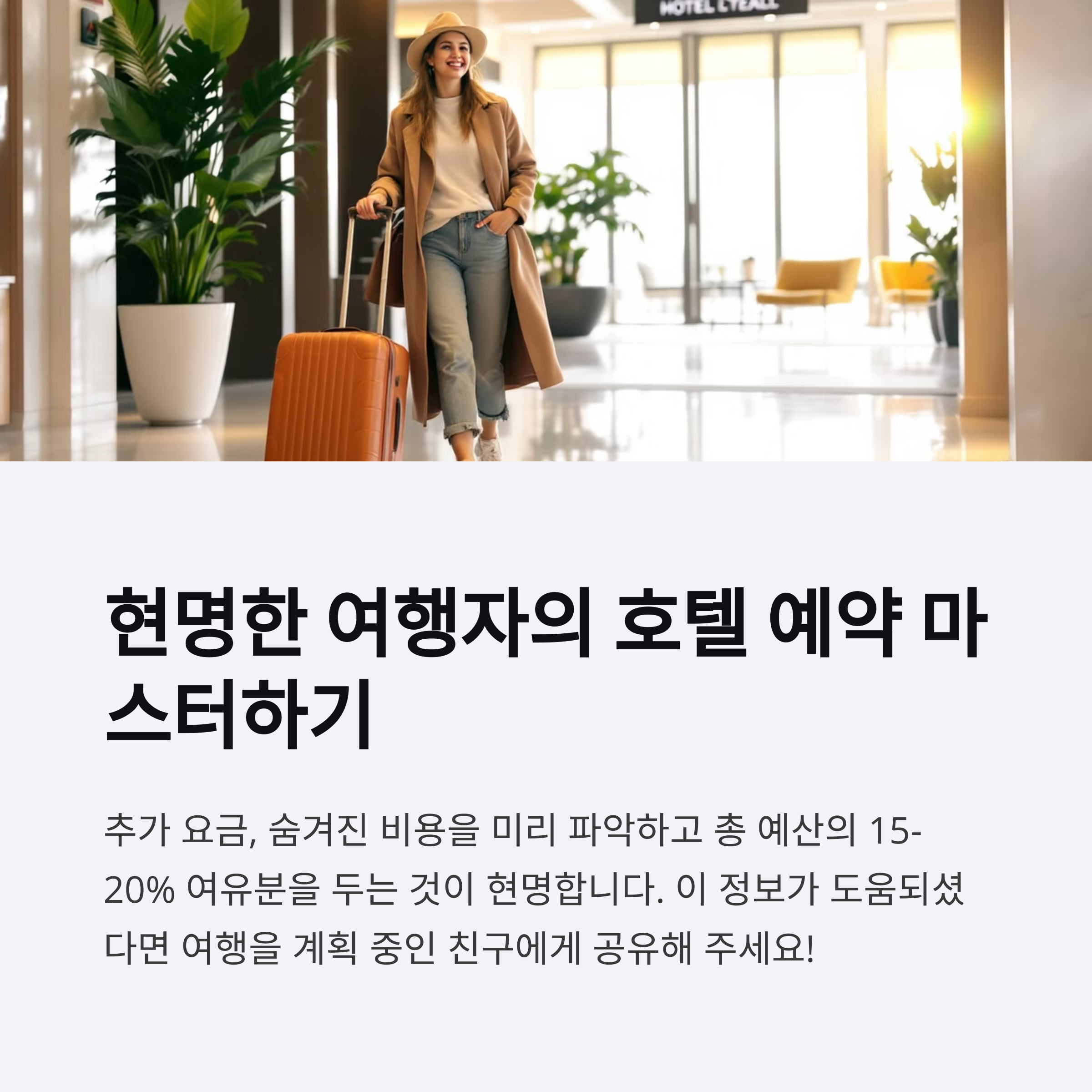 호텔 예약 시 겪으신 특별한 경험이나 꿀팁이 있다면 댓글로 공유해주세요. 다양한 경험이 모이면 서로에게 큰 도움이 됩니다!