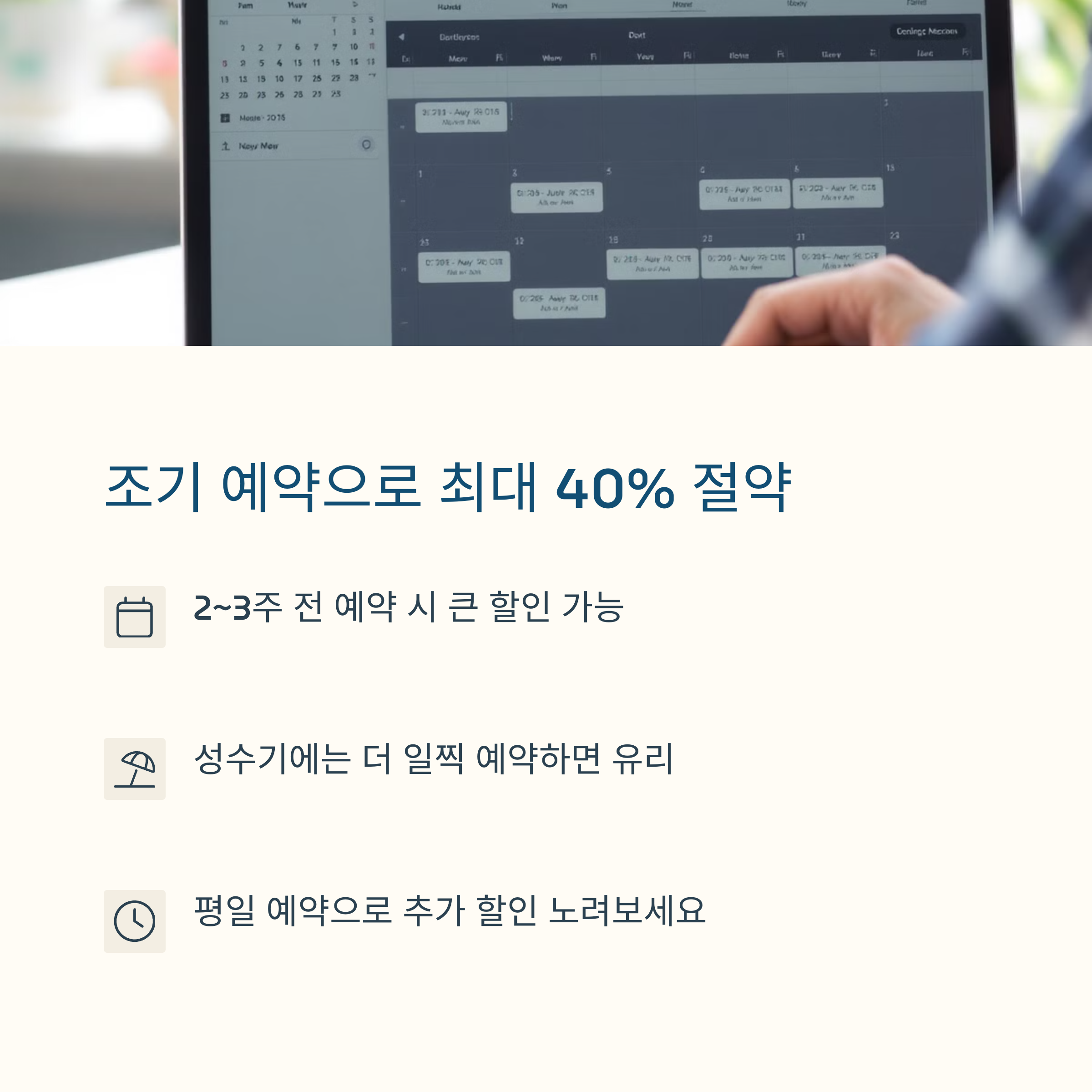 | 성수기 피하면 더 큰 할인 혜택 가능 | 카드사 제휴 할인까지 더하면 최대 이중 절약 | 무료 포함 서비스 활용으로 예산 안 넘기기 |