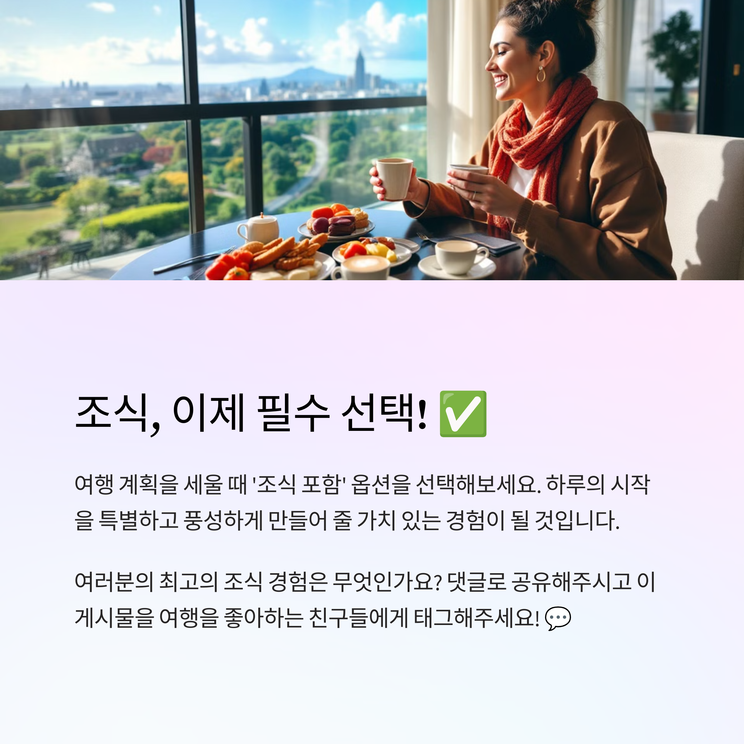 여러분이 다녀온 호텔 조식 중 가장 기억에 남는 곳은 어디인가요? 댓글로 추천해주시면 다음 포스팅에서 참고해 소개드릴게요! 다양한 경험을 함께 나눠주세요.