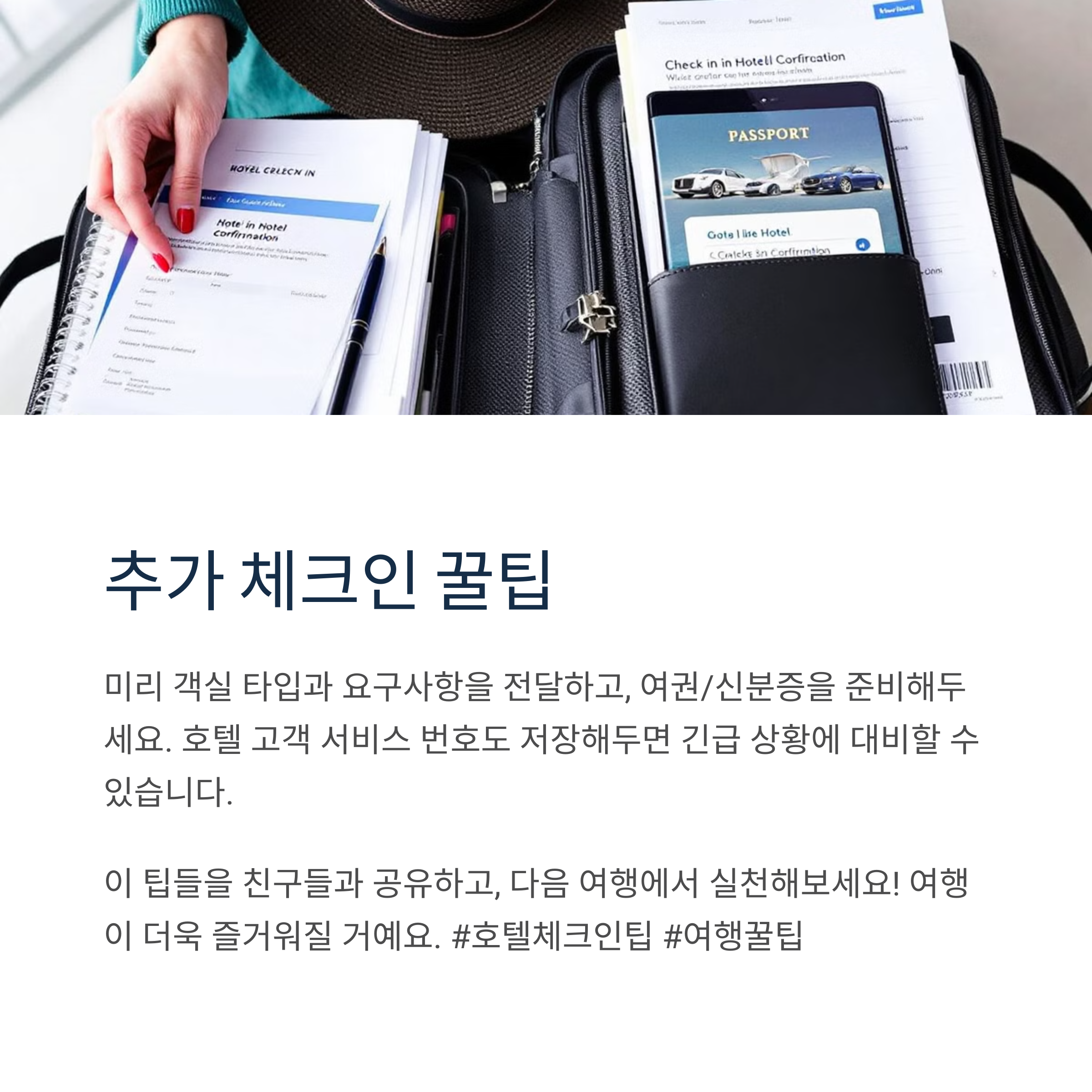 여러분은 호텔 체크인 시 어떤 팁을 활용하고 계신가요? 댓글로 나만의 노하우나 추천 꿀팁을 자유롭게 공유해주세요! 서로의 경험이 큰 도움이 될 수 있습니다.
